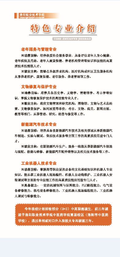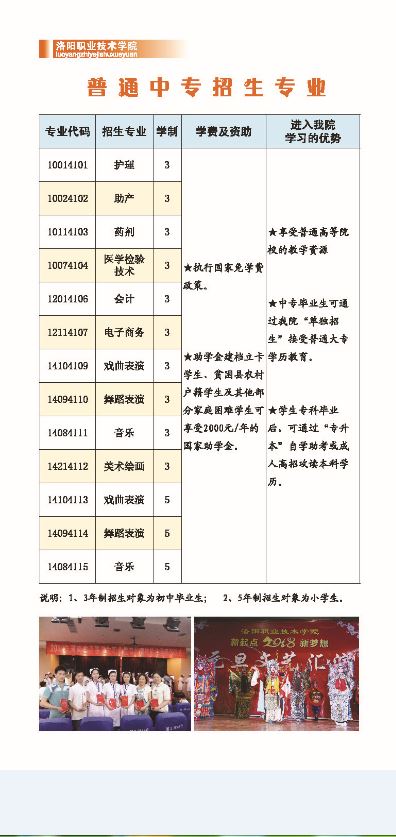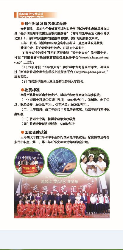 洛阳职业技术学院2018年五年一贯制及中专招生简章
