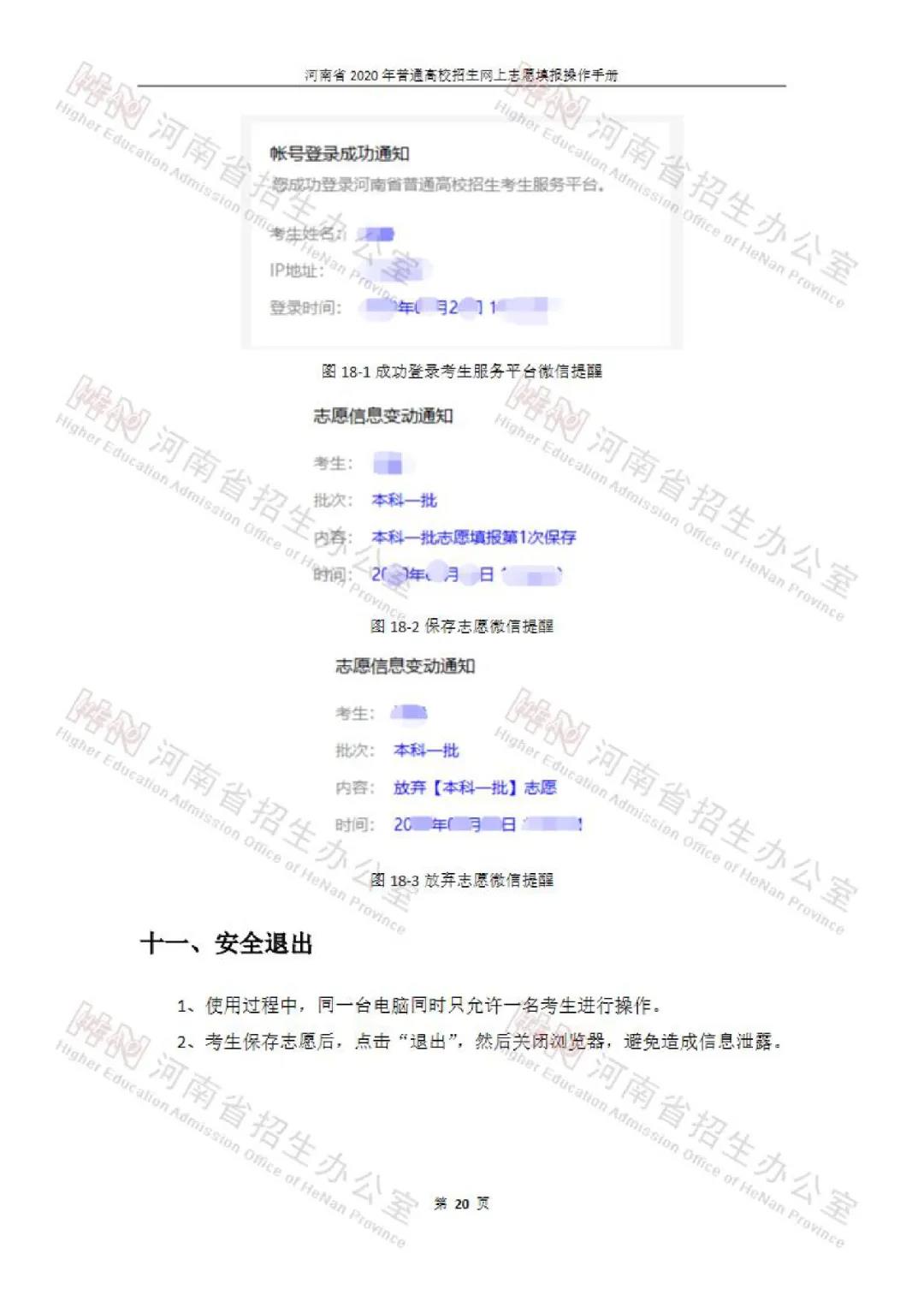 4.考生每次填报、修改或浏览完志愿后,请务必点击“退出”并关闭所有填报志愿期间打开的浏览器窗口,以免他人进行不利于考生本人的修改和信息收集;