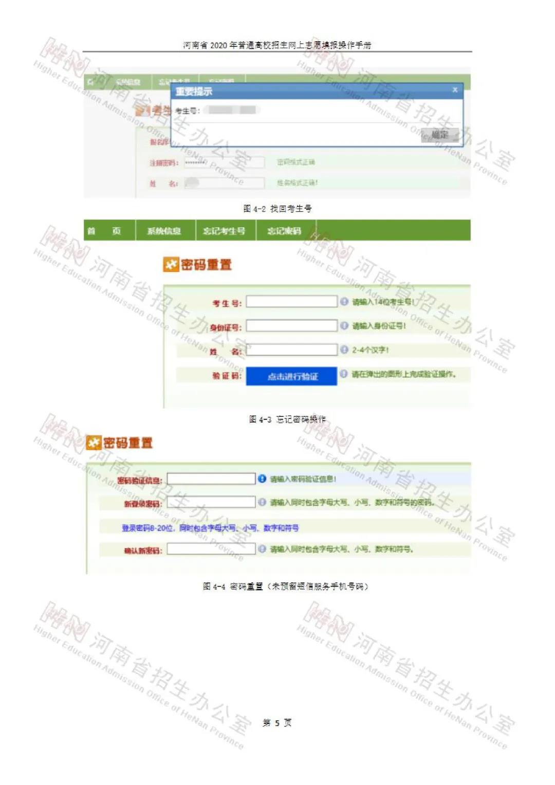 5.如忘记密码,可利用“忘记密码”功能进行密码重置,无法重置密码的,普通类考生本人持准考证原件和身份证原件到报名所在地的市县招办重置,对口、专升本考生本人持准考证原件和身份证原件到就近市县招办重置;