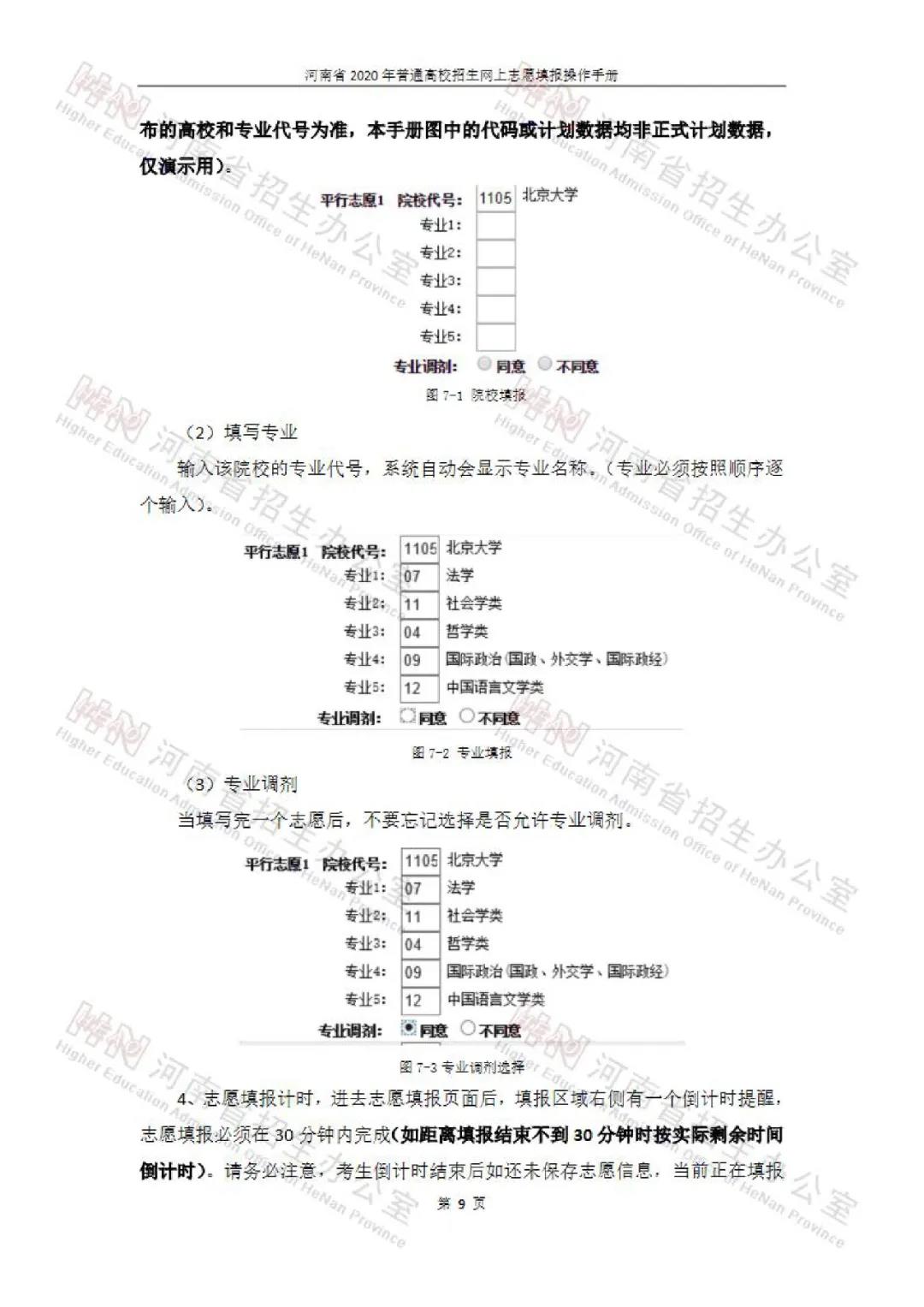 1.每次志愿填报必须在30分钟内完成,如超过30分钟,系统将自动关闭填报页面;