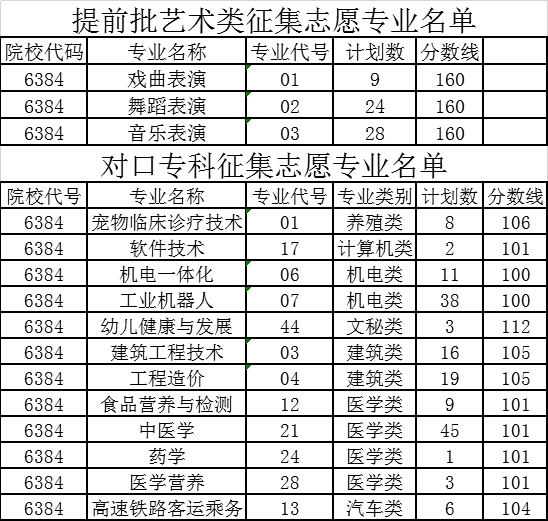 专科提前批院校按程序投档录取后,我院招生计划仍有余额,涉及艺术类、和对口招生。现面向符合条件的考生征集志愿,有关事宜通知如下: