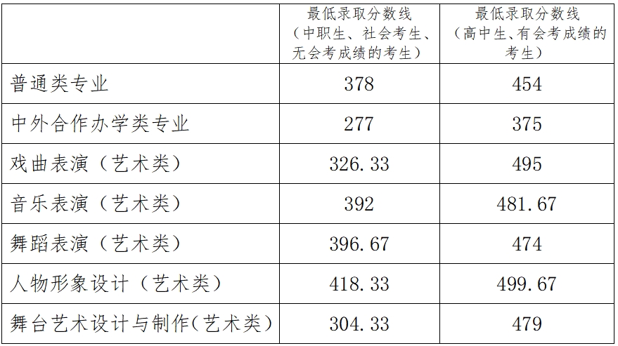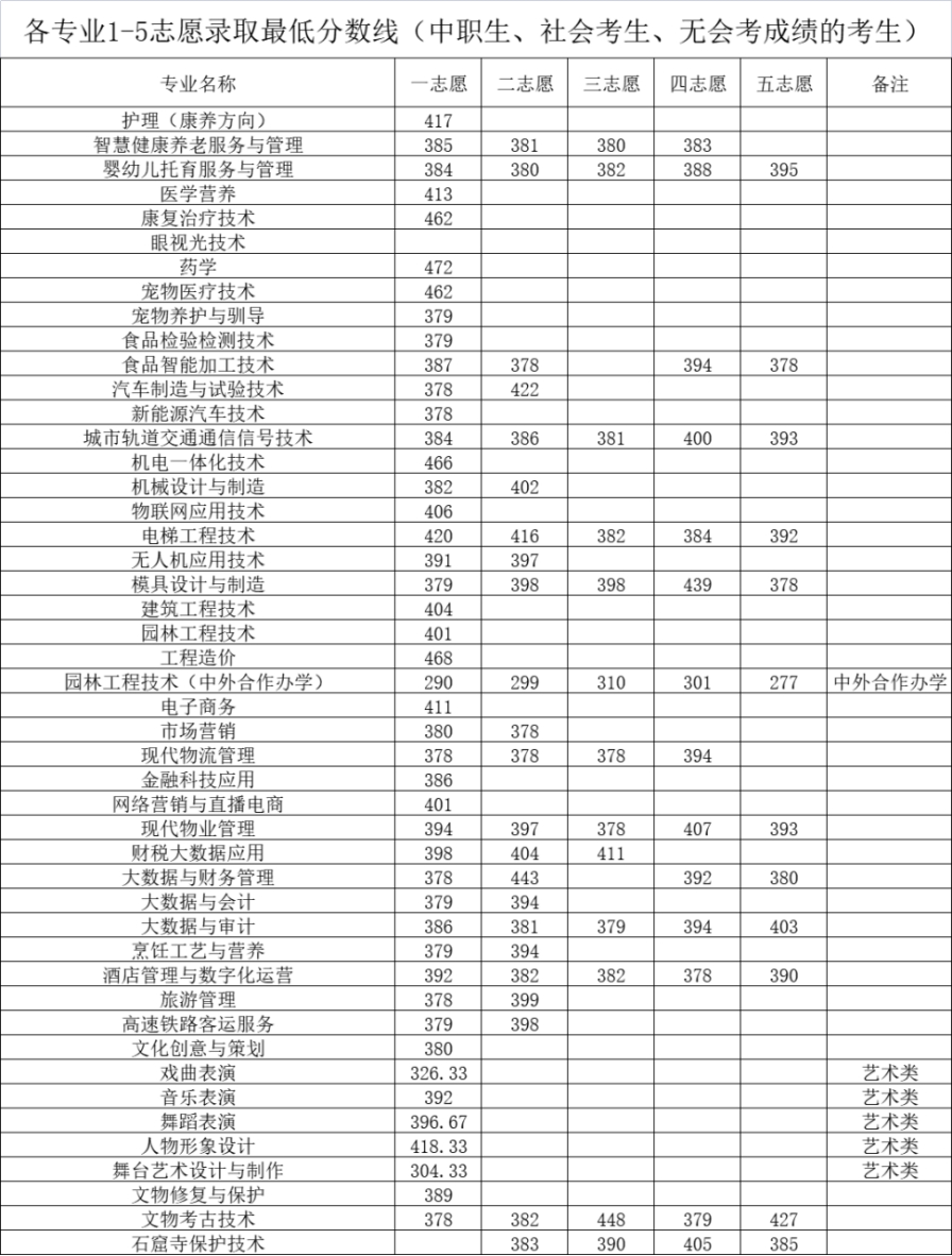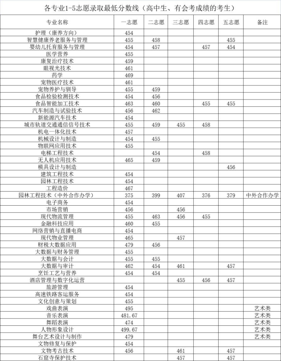 8.各专业1-5志愿最低录取控制分数线如下: