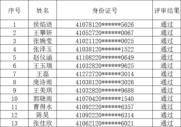 根据《洛阳职业技术学院2023年单独考试招生章程》,4月3日经专家评审,另有13名考生符合我校“职业技能免考”条件,资格审核结果为通过,不再参加学校组织的“职业技能”考试,学校直接赋分。现将补充名单公示如下,见附表: