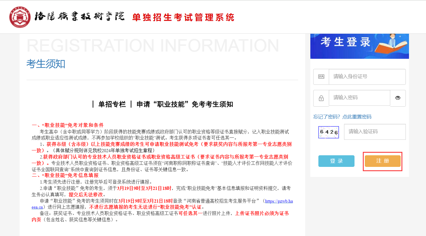 (2)完成上述志愿填报后,考生须于3月19日9时至3月21日18时,登录学校招生信息网(https://zjc.lypt.edu.cn/)完成“职业技能免考”基本信息填报和证明资料(获奖证书、专业技术人员职业资格证书、职业资格高级工证书、身份证等原件照片)提交。