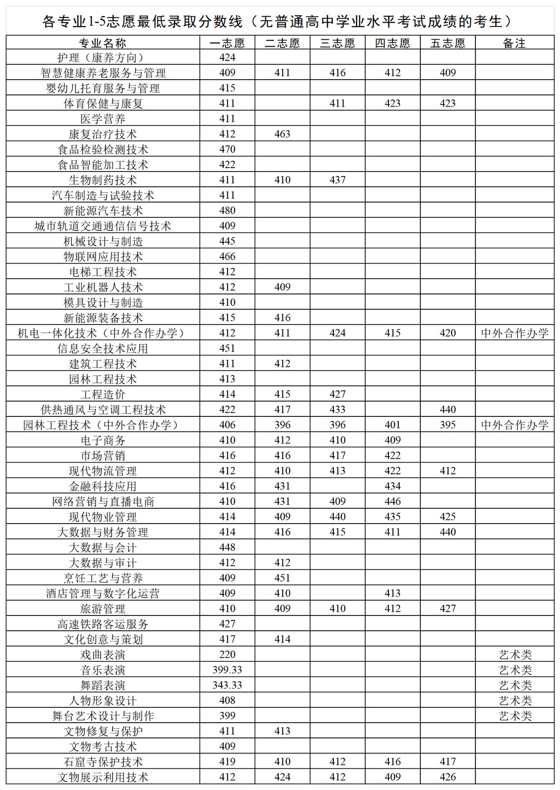 洛阳职业技术学院2024年单招各专业最低录取分数